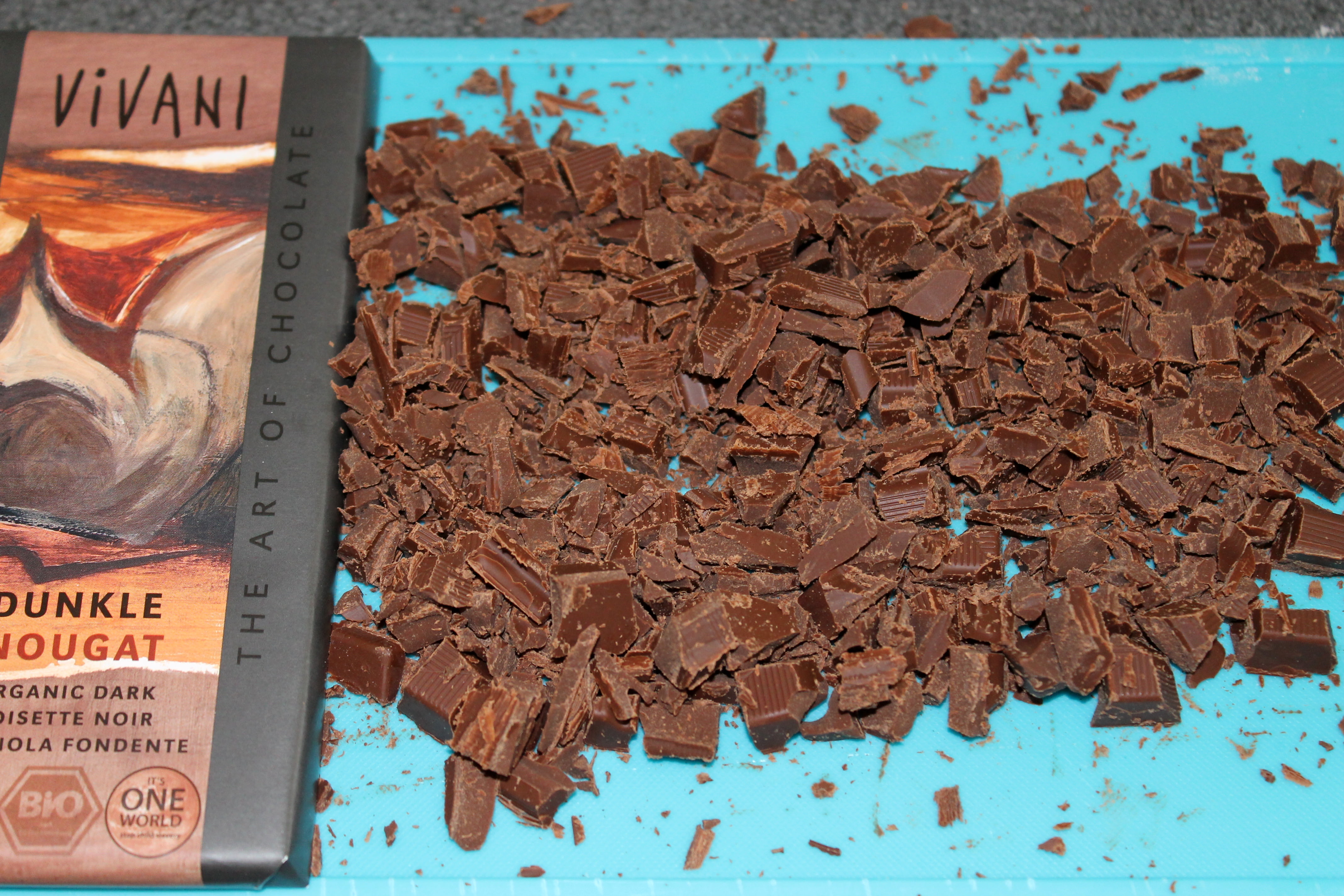 Ich nehme vegane Bitterschokolade, perfekt.