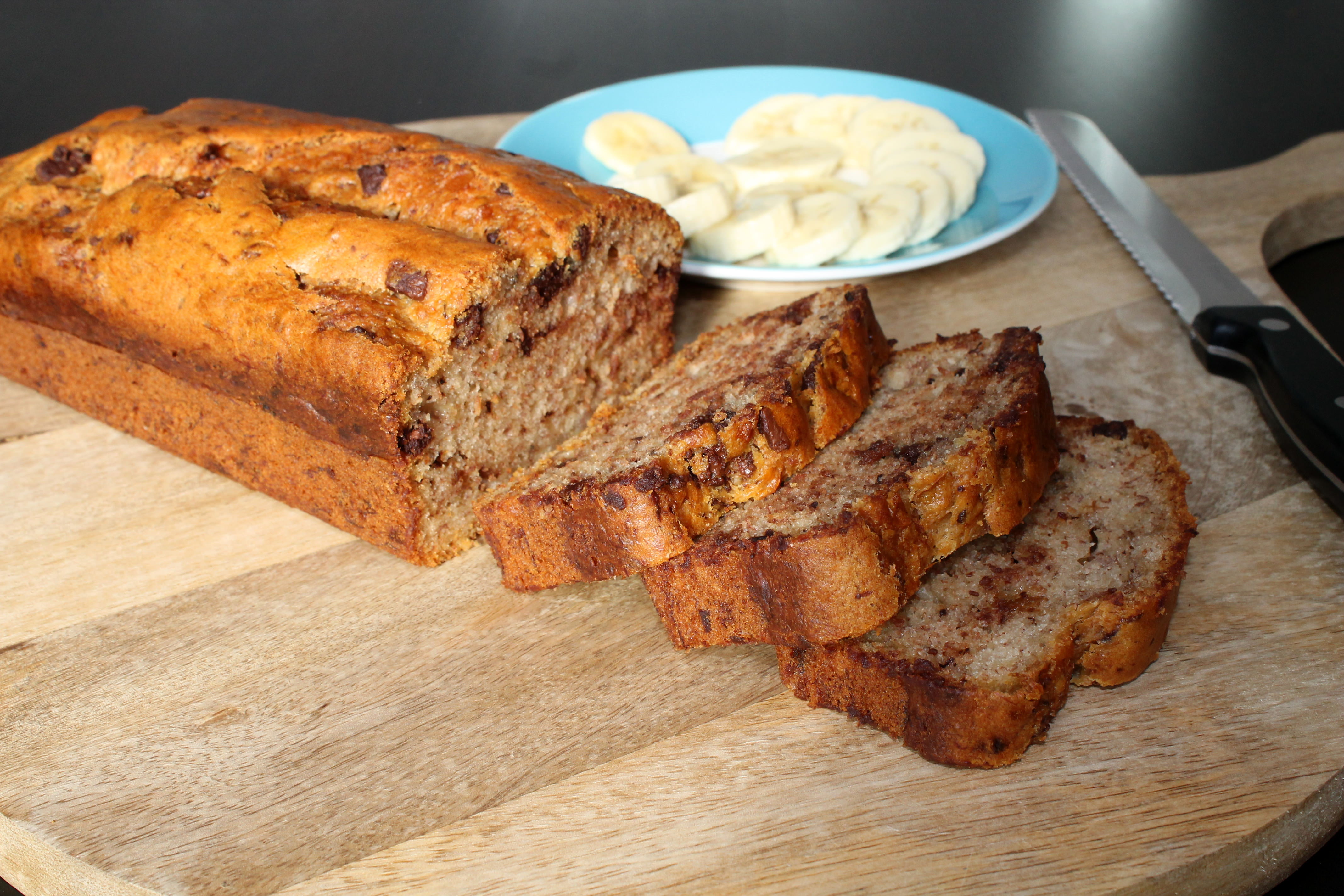 Es hat in meinem Umfeld die Runde gemacht und ist die Grundlage aller Bananenbrote, die ich backe. Ich gebe immer drei Datteln, ein wenig Bourbonvanille und Kokosmus dazu (oder ersetze 50g Mehl durch 50g Kokosmehl). Die Schokolade lasse ich weg. Das Ergebnis ist einfach köstlich.
