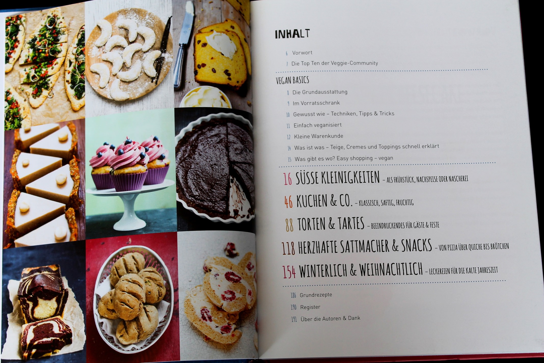 Das Buch ist einfach aufgebaut: Vegan Basics, Süße Kleinigkeiten, Kuchen & Co, Torten & Tartes, Herzhaftes & Snacks, Winterlich & Weihnachtliches.