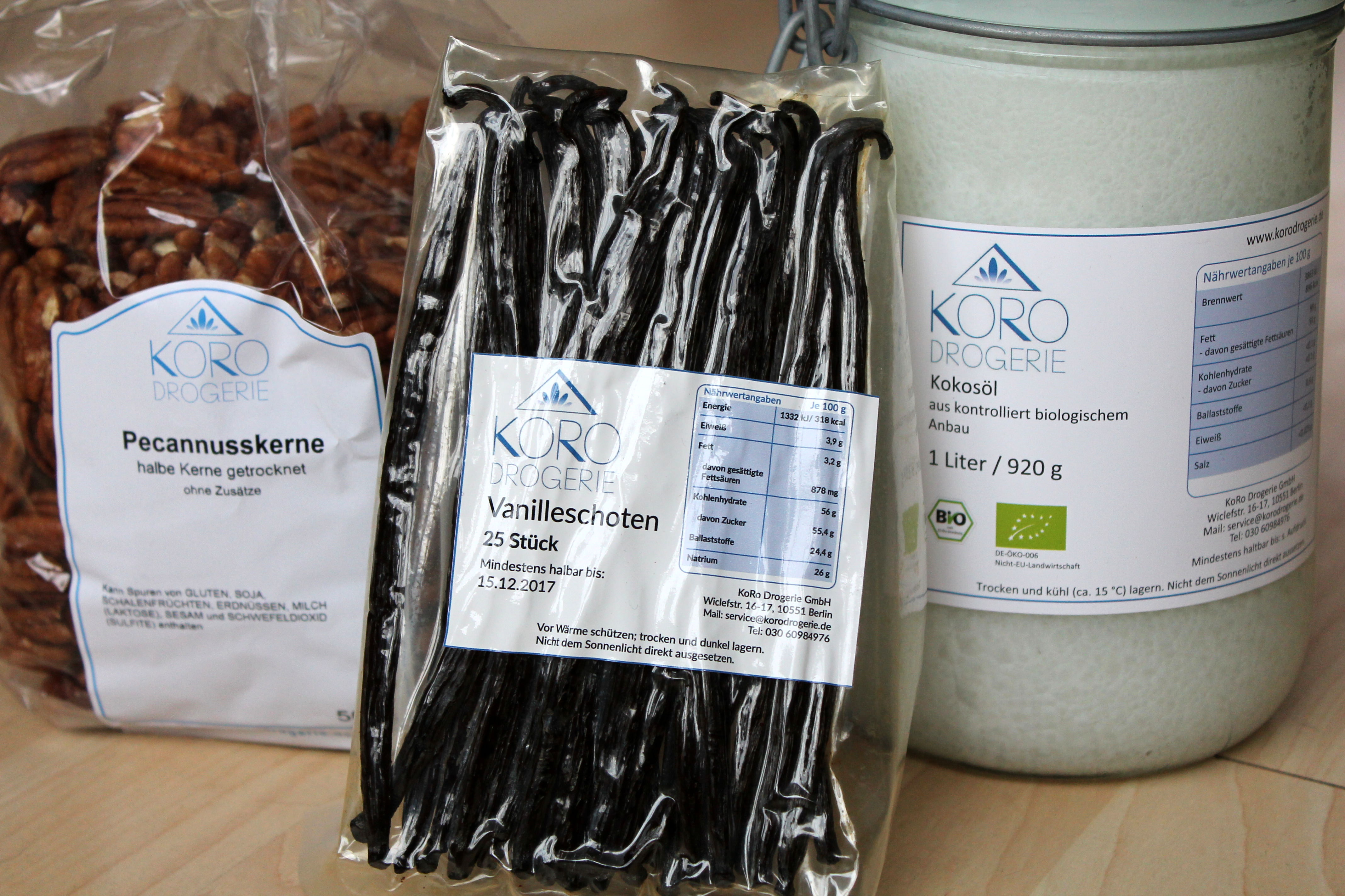 Für dieses Rezept habe ich übrigens die Vanilleschoten, das Kokosöl und die Nüsse von der Koro-Drogerie zugeschickt bekommen 🙂
