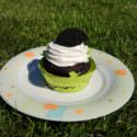 - Sahne auf die abgekühlten Cupcakes geben und mit Halloweendekoration verzieren.