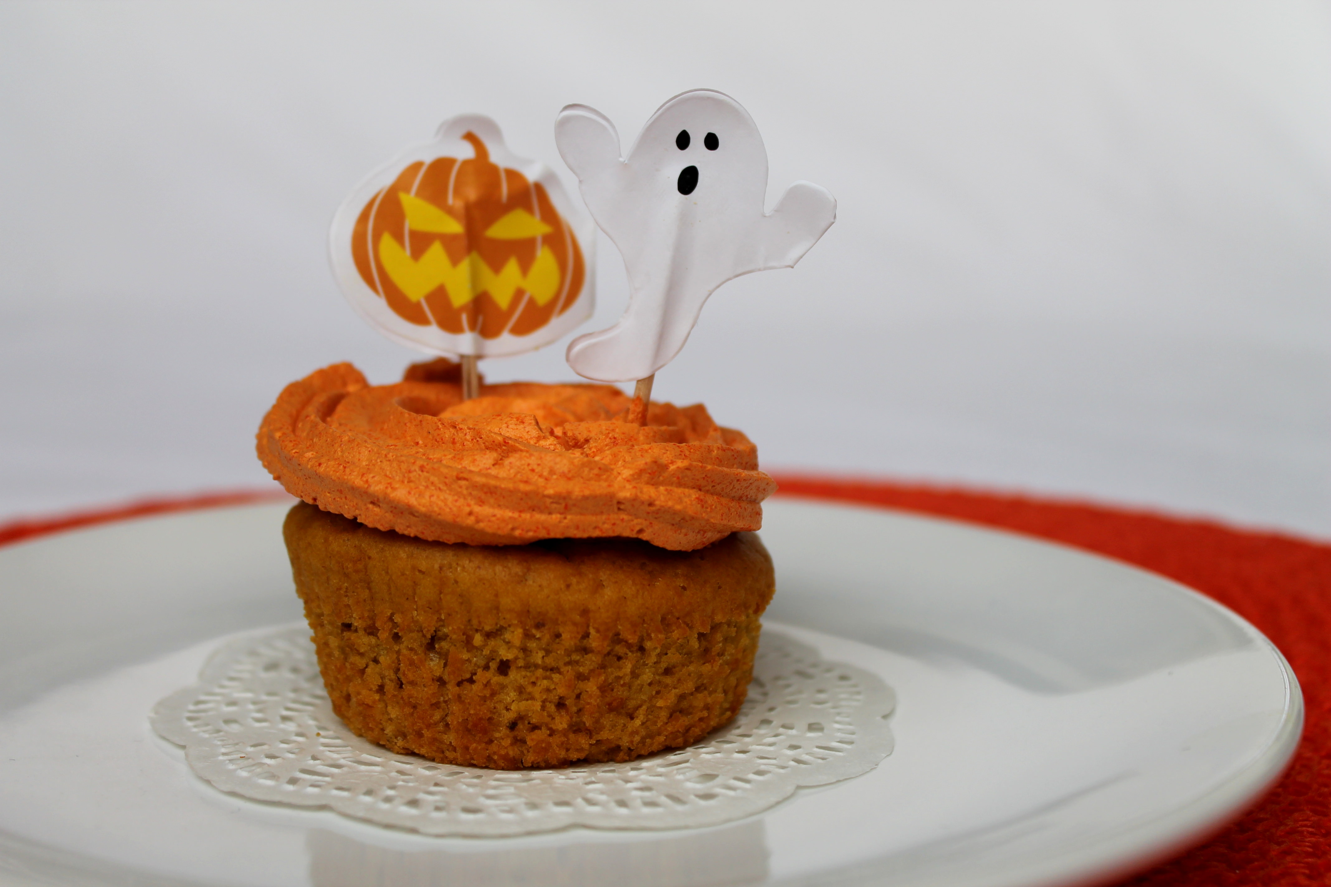 Mit entsprechender Deko passen diese herbstlichen Cupcakes perfekt zu Halloween. Der Kürbis harmoniert gut mit den anderen Gewürzen und passt somit prima zu dieser Jahreszeit.