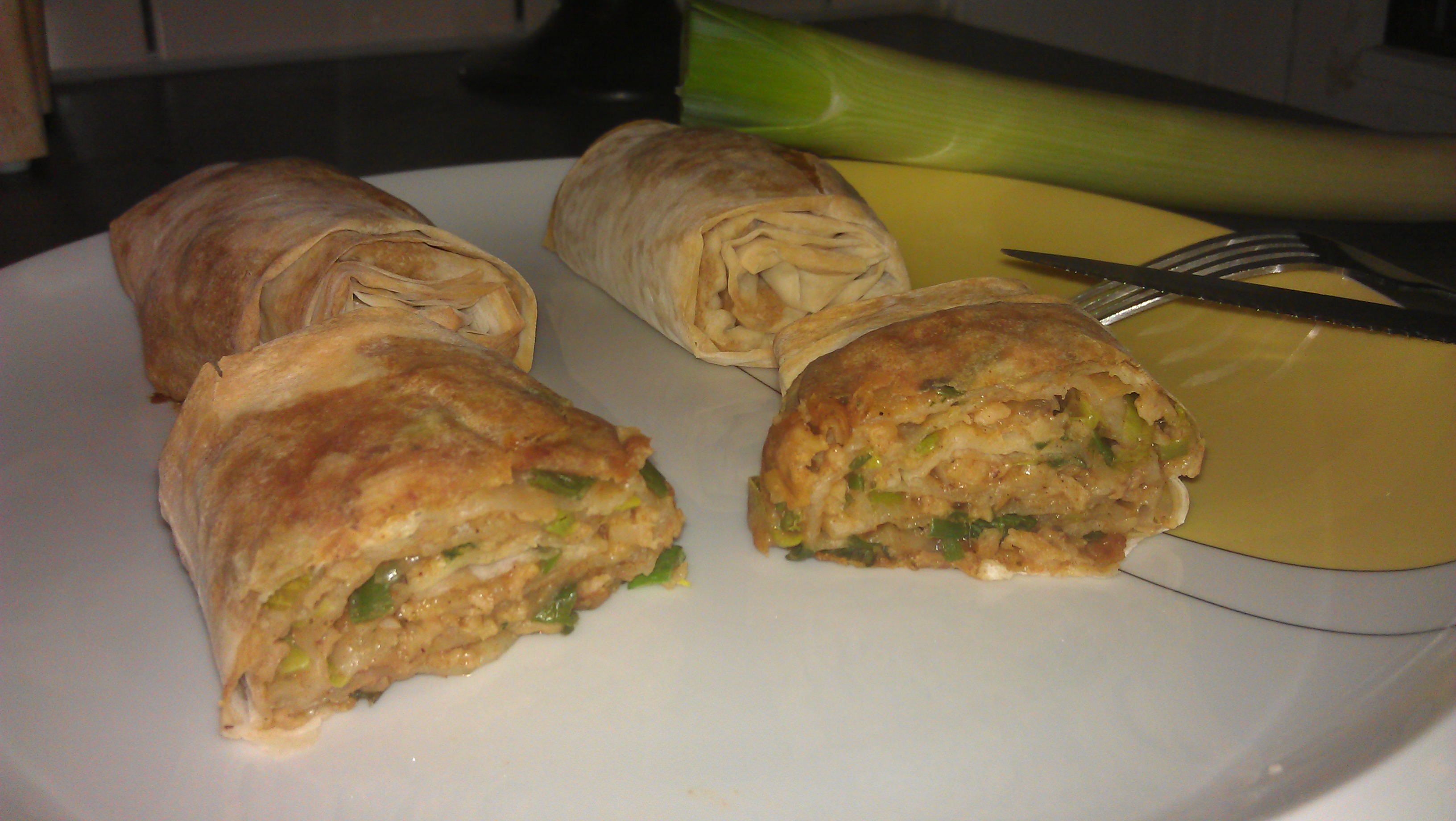 - Nun 1/8 von dem Lauchgemisch mittig auf ein Nudelblättchen geben und gut verteilen. Die Rollen von den Seiten zur Mitte hin einklappen und aufrollen. Bei 180 Grad Umluft für 20 Minuten backen. Ich hab zusätzlich noch einen Klacks Margarine in die Rollen gegeben, das muss aber natürlich nicht.