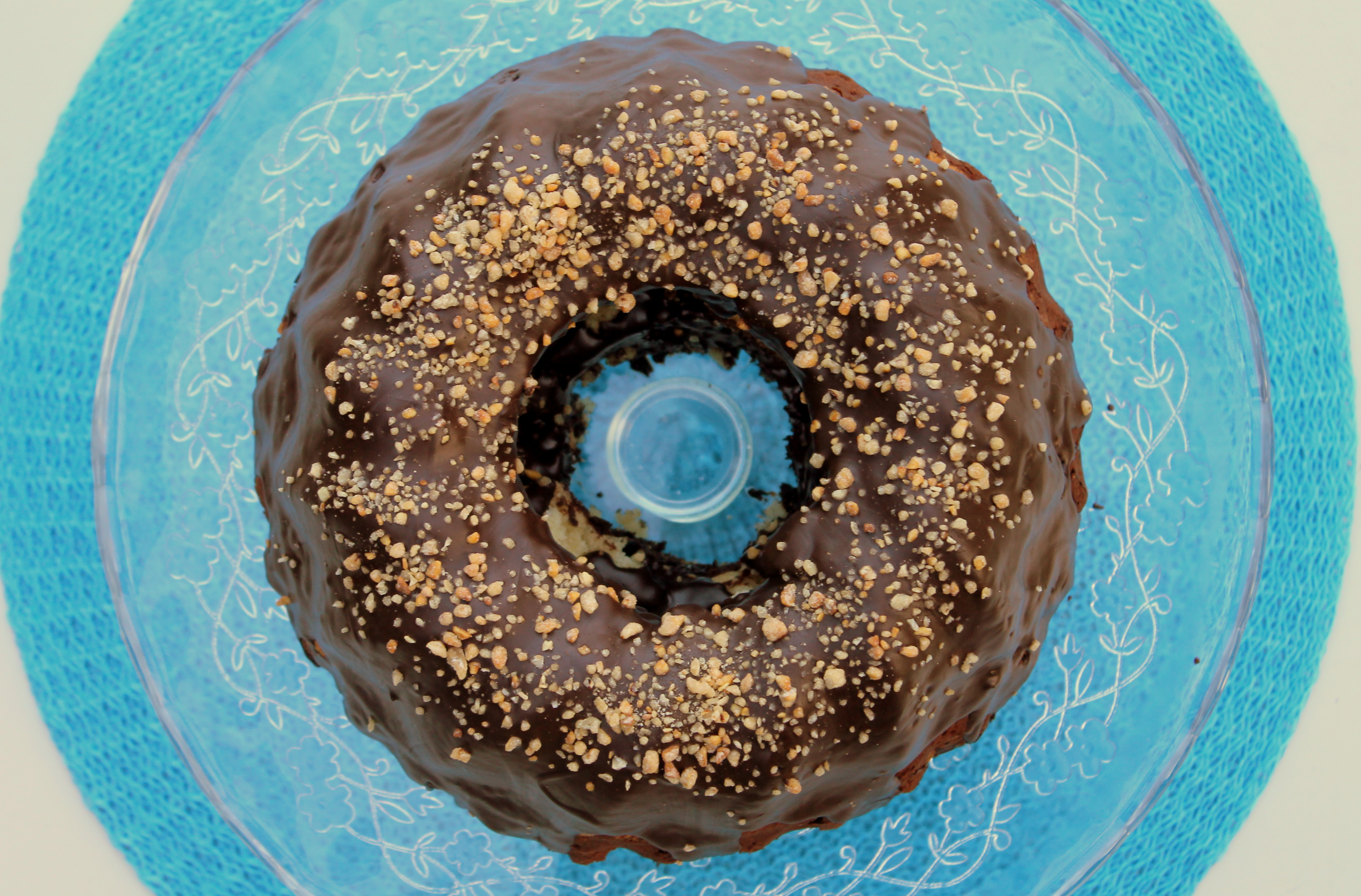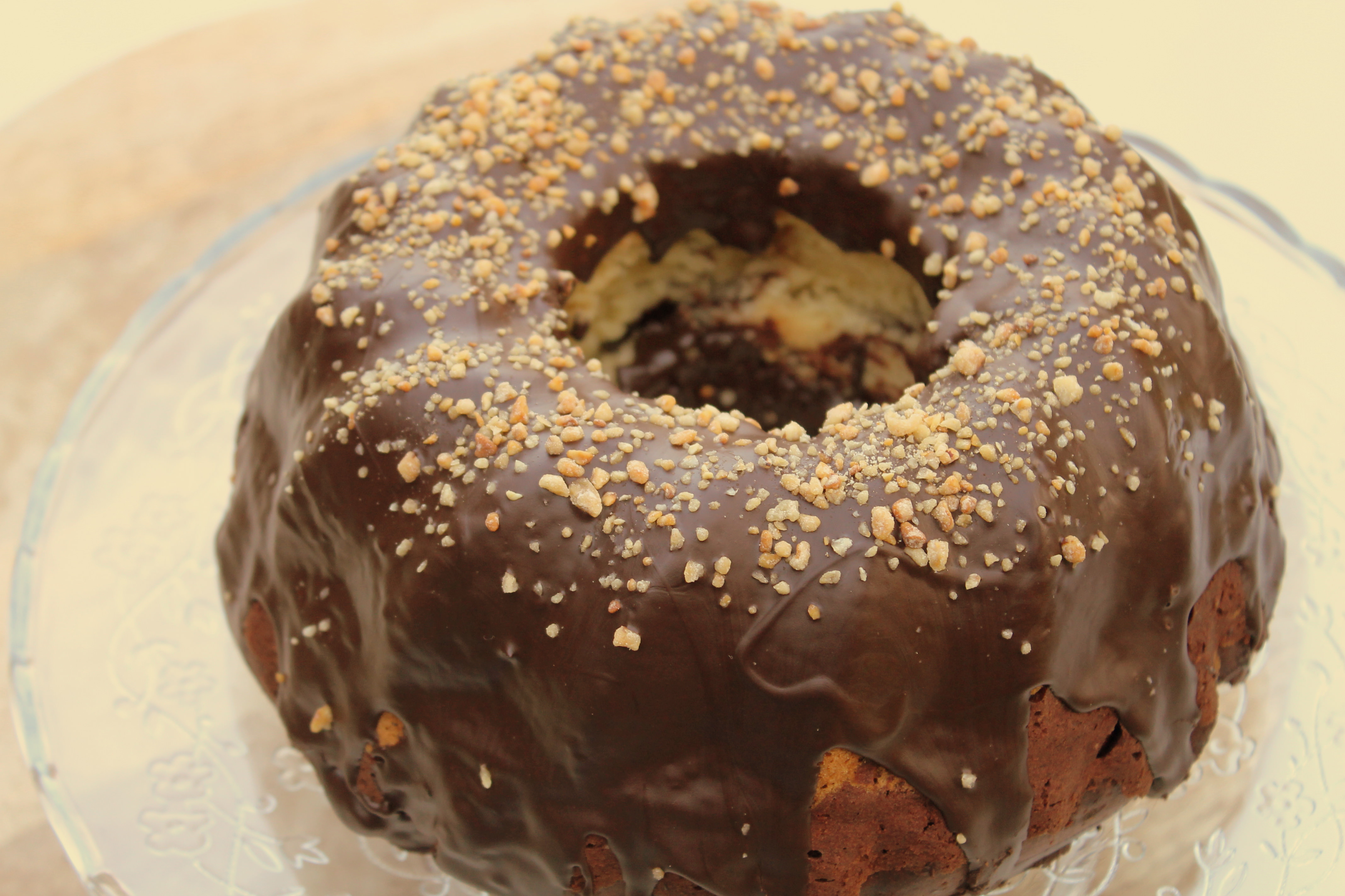 - Wer mag, kann den Kuchen mit Puderzucker bestreuen oder mit geschmolzener Schokolade übergießen. Ich gab noch etwas gehackte Nüsse auf die Schokoladenschicht.