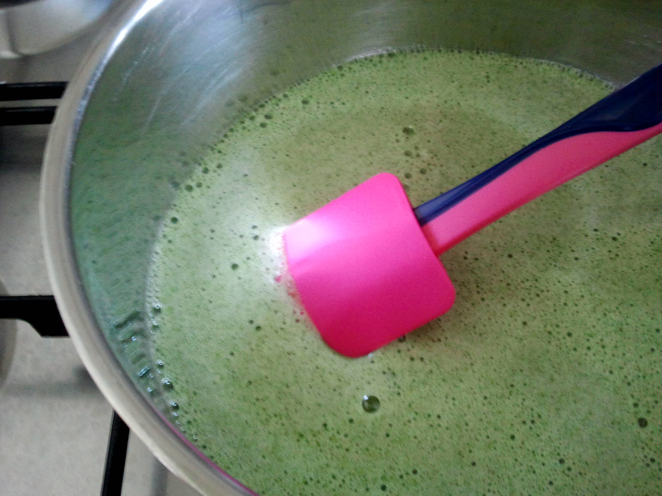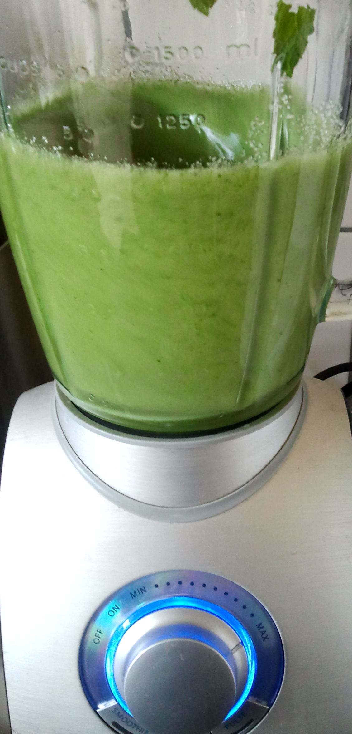 So schön grün wie das fertige Resultat auf deinem Bild, ist er leider auch nicht geworden, obwohl ich drei Hand voll Minze genommen habe.