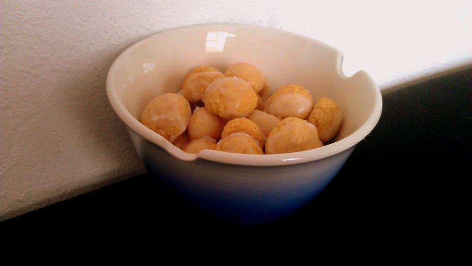 Vom Teig Haselnussgroße Stücke abzupfen, zu Kugeln formen und bei 160 Grad Umluft (175 Grad Ober- und Unterhitze) für 10-12 Minuten backen. Zwischendurch die Hände immer mal wieder gut mit Mehl einreiben. Man kann auch erst eine lange Rolle formen und von dieser Stücke abschneiden, so werden die Kugeln gleichmäßig groß.