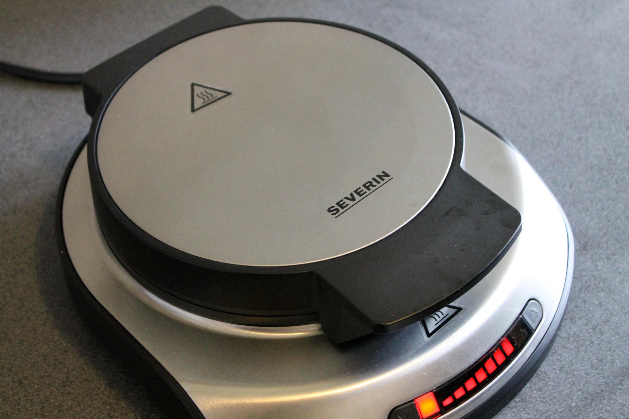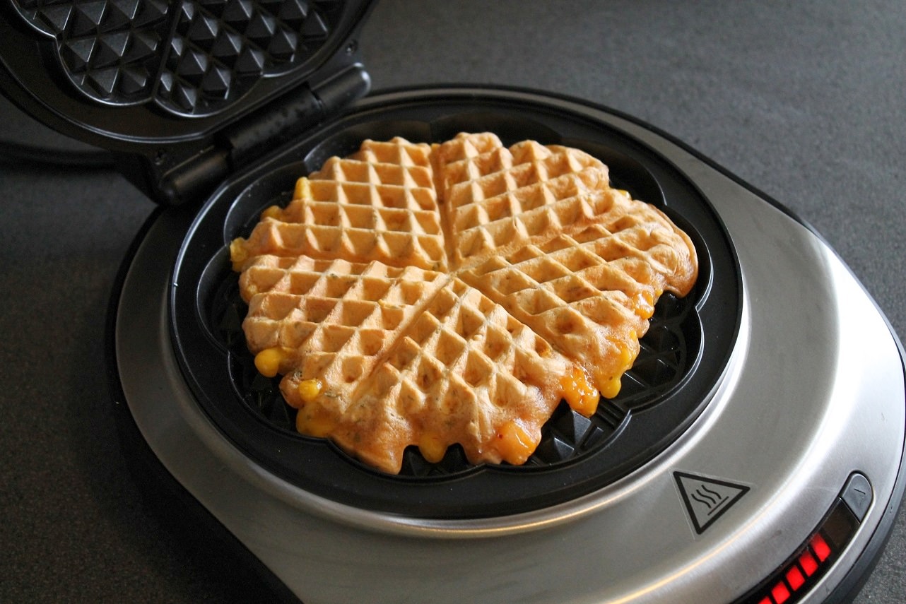 Für dieses Rezept benutze ich im Übrigen das neue Waffeleisen von Severin. Mit diesem Eisen kann man nämlich extra dicke Waffeln backen – ist für diese Pizzawaffeln natürlich perfekt. Da ich in den Teig Wilmersburger und Aldi-Aufschnitt gegeben habe, brauchte ich einfach den Platz für dicke Waffeln.