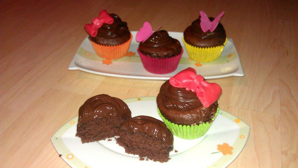 Für die Muffins alle Zutaten zusammen in einer Schüssel vermischen und in Muffinförmchen geben. Bei Umluft 170 Grad für 20-25 Minuten backen. Währenddessen in einem Topf die Sahne warm werden lassen und die Schoki darin zum Schmelzen bringen. Alles mit einem Rührbesen gut vermischen und abkühlen lassen. Sobald es kalt wird, wird es auch fester (dauert ein paar Stunden, wenn ihr so Ungeduldig wie ich seid, stellt ihr den Topf eben auf den kalten Gartenboden und danach in den Kühlschrank). Sobald alles kalt ist, das Topping mit einem Spritzbeutel auf den Muffins verteilen. Eventuell verzieren. (Die Muffins schmecken auch ohne Topping sehr lecker).