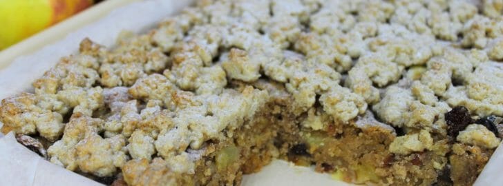 Erinnert ihr euch noch an die leckeren Bratapfelmuffins auf dem Blog? Dieses Jahr hatten wir Lust das Rezept etwas abzuwandeln und daraus einen leckeren Bratapfelkuchen mit Zimtstreuseln zu zaubern!